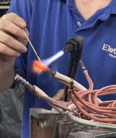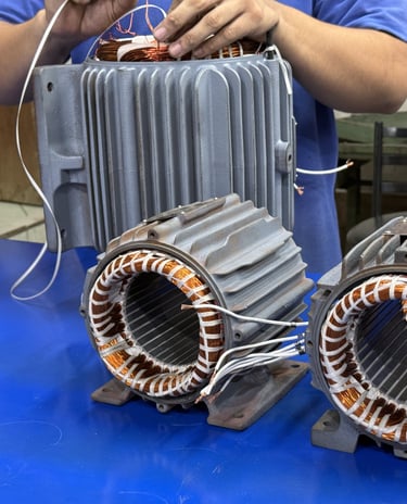 Rebobinamento, manutenção e testes completos em motores elétricos industriais.